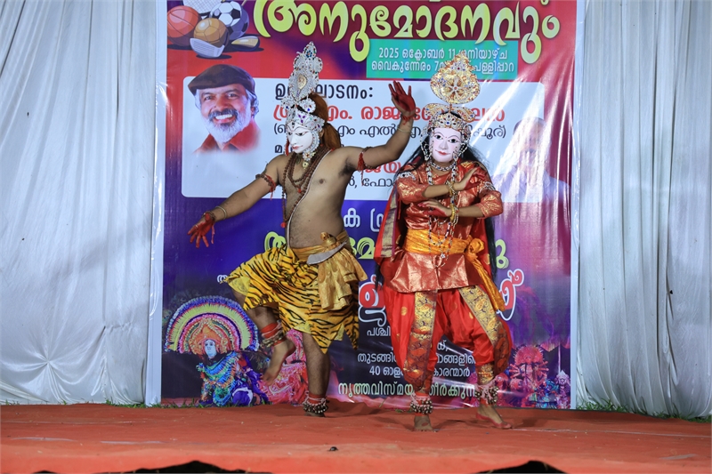 The second day of the festival, held on 11 October 2025 at Pallippara, Cheemeni, marked a unique collaboration between Folkland and the E.K. Nayanar Memorial Volleyball Academy, celebrating both the 5th Anniversary of the Academy and Pavizholsav. The program was inaugurated by Mr. M. Rajagopal, MLA, Trikkaripur Constituency, with Dr. V. Jayarajan, Chairman of Folkland, as the Chief Guest. Mr. A.G. Ajith Kumar, Mr. K. Sukumaran, Mr. P.V. Harish (INTACH, Kasaragod), and Mr. M.K. Nalinakshan offered felicitations, while Mr. Ramesan, Secretary of the Volleyball Academy, delivered the welcome address.