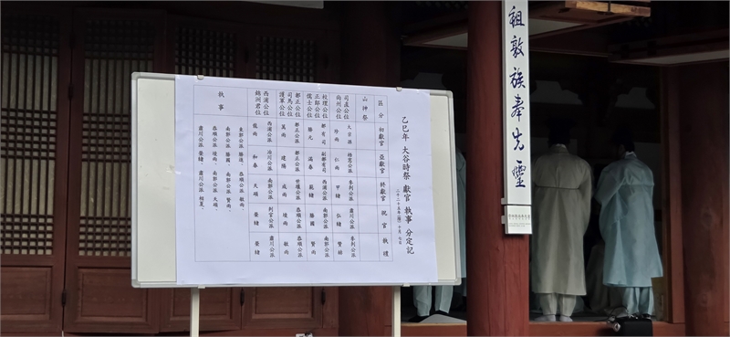 The Choheon (first officiant), Aheon (second officiant), and Jongheon (final officiant) made their ritual offerings in sequence, while members of the Sajikgong, Namyanggong, Heungyanggong, and Chuncheongong branches supported the proceedings.